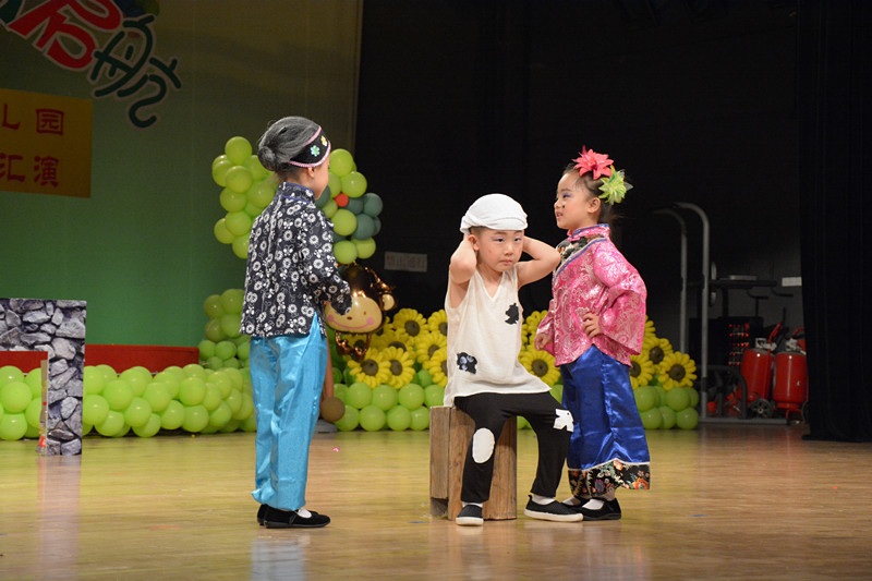 在六个小主持人精彩的亮相中,庆“六一”文艺汇演拉开帷幕。大一班的舞蹈《老师亲妈妈亲》,动感的音乐、满含深情的歌词,以及孩子们俏皮灵动的舞姿,使在场的老师和家长们为之心动;中班的舞蹈《快乐儿歌》《咏鹅》,充分展示了孩子们的童真童趣;小班的舞蹈《快乐宝贝》《去郊游》《虫儿飞》,动作稚朴,笑容纯真,博得了大家的阵阵掌声;大班的《孔子爷爷》《说唱脸谱》,向大家展示了优秀的中华传统文化;大三班的舞蹈《春芽》,将抒情的旋律和柔美的舞姿完美融合,带给观众以美的享受;中班的童话剧《半夜鸡叫》,通过孩子们惟妙惟肖的表演重新诠释了这个经典故事,让小朋友明白了做人不能太吝啬,否则就会像剧中的周扒皮一样“悲惨”。 互动节目更让台上台下连成一片,嗨翻全场。孩子们个个劲头十足,红红的脸蛋上流露出灿烂的笑容,家长们的阵阵喝彩声更是把演出推向了高潮。在中二班的《庆祝六一》的歌曲中,文艺汇演圆满落下帷幕。