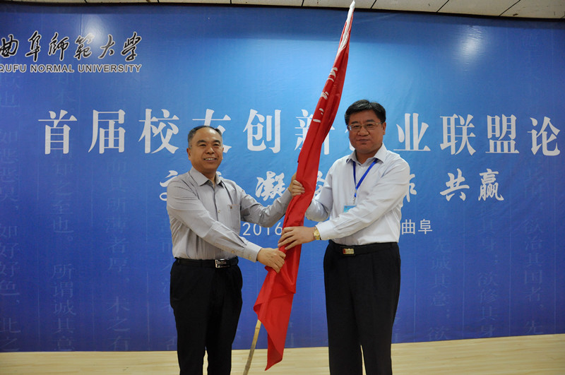 会上进行了会旗交接仪式,傅永聚会长向第二届校友创新创业论坛的承办单位济南校友会授旗,济南校友会副会长兼秘书长刘德明接过会旗。至此,首届校友创新创业联盟论坛圆满落幕。