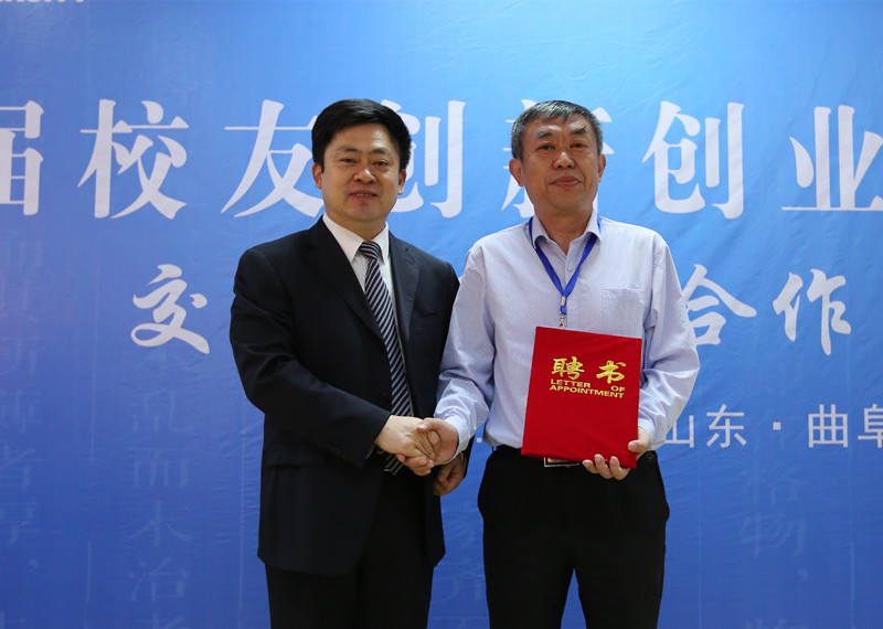 戚万学校长向此次受聘为大学生创业导师的高靖平、杨文、谭宝剑、柴继锋、卞爱美、汪洪田、孙兴广、鹿传欣、刘德明、王谦修、朱金强、张建华、孙国成等13位优秀校友颁发了聘书。