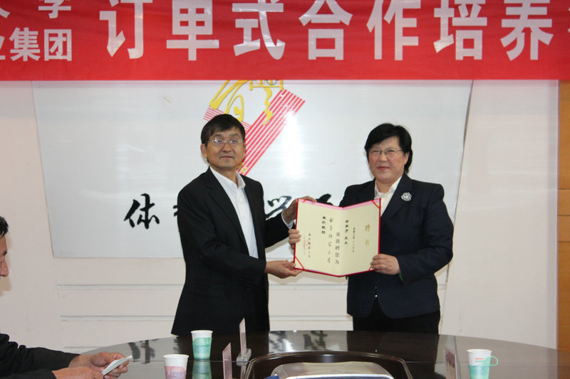 接着,王继锁和徐美芳董事长签订了“完美体育(中国)官方网站·山东中大体育产业集团订单式合作培养”协议,并为徐美芳董事长颁发了兼职教授聘书。