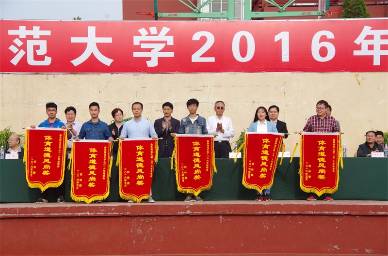 总裁判长李兆进宣布了本次运动会的比赛结果以及2015年度体育先进个人名单。其中,传媒学院、法学院、信息科学与工程学院获得教工组团体总分前三名。工学院、信息科学与工程学院、马克思主义学部获得学生组团体总分前三名。本次运动会共有两人打破校普通记录,其中,传媒学院的朱竹在女子跳高中以1.47米的成绩,刷新校女子普通组1.46米的跳高记录;信息科学与工程学院的李艳青在女子100米中以12.9秒的成绩,刷新校女子普通组100米13.3秒的记录。此外,经济学院的孙凯丽在2015年第十五届大学生田径锦标赛以16.76秒打破了原16.90秒女子100米栏记录,我校各运动队在2015年省级以上比赛中也取得了傲人的成绩。