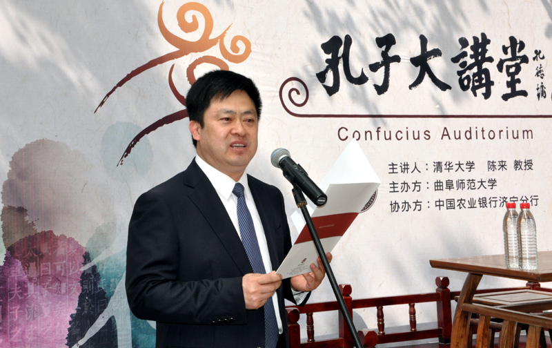 戚万学在致辞中表示,曲阜师大地处儒家文化发源地,是一所因孔子而生的大学,自建校起就承担着传承和弘扬孔子儒学的文化使命,传承创新中华优秀传统文化是贯穿学校60年办学历程的灵魂和血脉。习总书记“曲阜讲话”之后,更加激发了学校对中华文化的自觉、自信和责任担当。学校顺天时、得地利、应人和,将“文化立校”确立为建设孔子家乡百年学府的重要战略,勇敢承担起文化复兴的神圣使命。“孔子大讲堂”是曲阜师大推进“文化立校”战略而实施的一项重大举措,学校将搭建一个面向世界文明的思想平台,举办一系列碰撞思想、陶冶性情、浸润心灵的学术盛会,展开学术争鸣,发出中国学者的曲阜声音,彰显儒学国际话语权,提升优秀传统文化传承发展示范区的影响力,打造曲阜、山东乃至全国的文化名片。