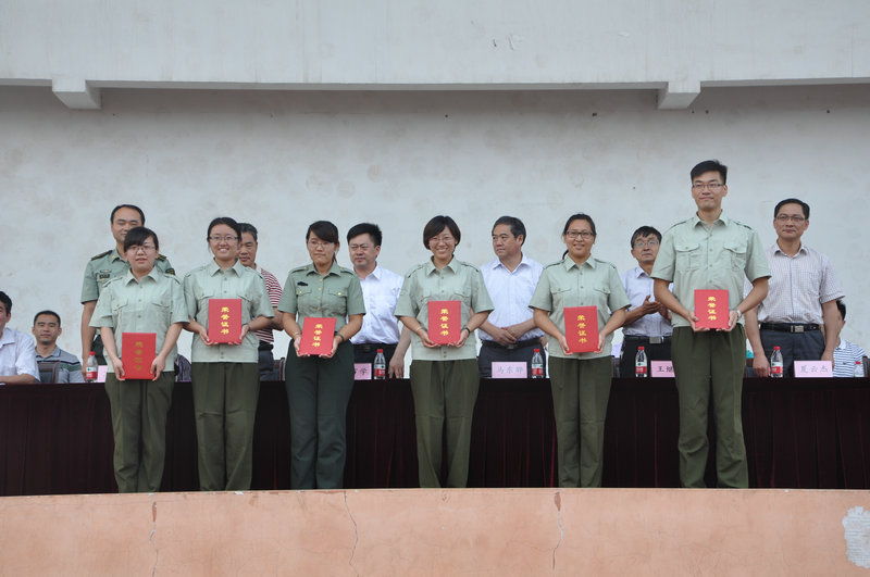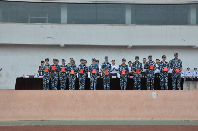 大会宣读了军训先进单位和个人名单,在主席台就坐的领导为获奖代表颁发了奖牌和证书。