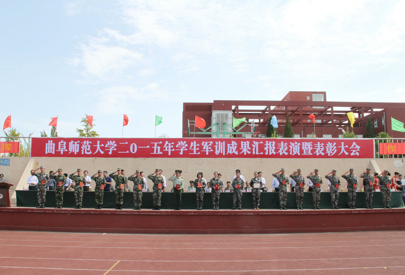 9月25、26日,我校2015级军训汇报表演暨总结表彰大会在两校区隆重举行。学校领导戚万学、马东骅、康淑敏、扈庆学、王继锁,中国人民解放军72395部队副部队长王支福,军训团团长、日照边防检查站副政委李文华,日照市大学科技园工委副书记、管委调研员姜书明以及学校有关部处负责人和各学院党总支副书记出席大会并在主席台就坐。大会分别由校学生工作处副处长王志华、日照校区学生工作办公室副主任徐正伟主持。