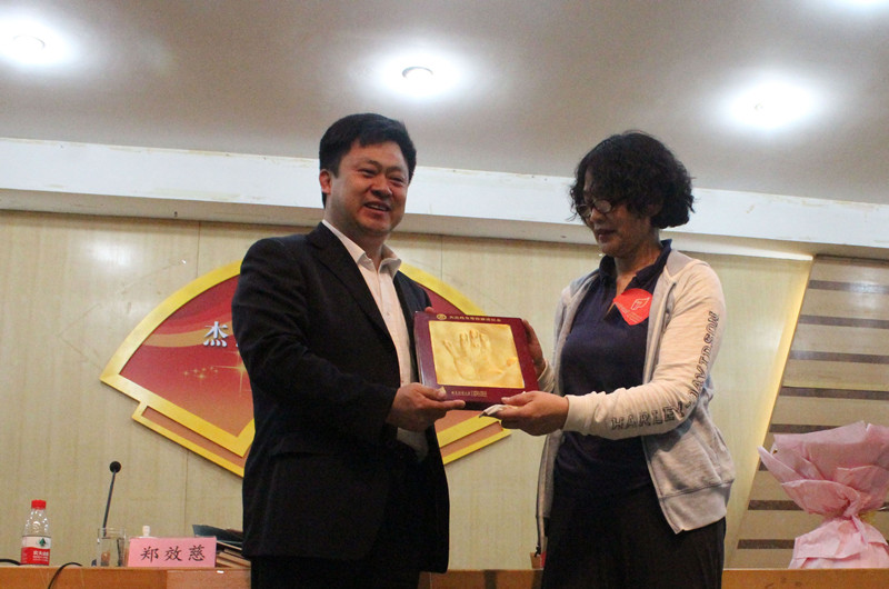 校长戚万学代表学校为郑效慈颁赠了“杰出校友母校演讲”纪念牌及纪念章,并赠予其母校就读期间的学籍档案复印件。郑效慈留下了自己的手模,并题词和录制微视频为母校60周年校庆送上祝福。