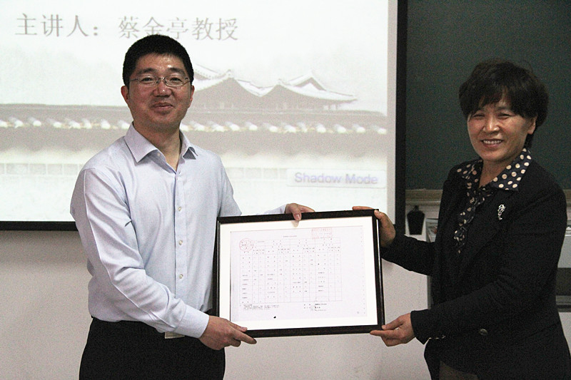 4月27日下午,60周年校庆系列活动之“百家学术讲堂”在日照校区开讲,原外文系1992级杰出校友,解放军外国语学院博士生导师、外语类核心期刊《解放军外国语学院学报》主编蔡金亭教授做了题为《翻译研究论文的评审》的精彩学术讲座。副校长康淑敏为蔡金亭教授颁发“名家高端学术讲堂纪念牌”,并赠予其在母校就读期间的学籍卡和成绩单复印件。翻译学院院长卢卫中主持讲座,翻译学院全体教师、研究生、部分本科生及其他学院部分教师参加了讲座。