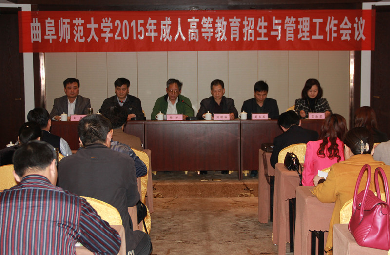 职业与成人教育学院负责人就贯彻落实《山东省教育厅关于进一步加强成人高等教育管理有关问题的通知》精神,依法诚信规范办学,严格招生宣传,严格按划分区域招生,严格执行收费标准,严格组织教学和考试,严格学籍管理等提出具体要求;通报了2015级新生注册情况和存在的问题,就生源划分和新生注册作了详细说明;总结了我校2014年成人高等教育招生情况,分析了2015年成人高等教育招生面临的严峻形势,提出了应对思路和措施,就做好2015年成人高等教育招生工作进行了安排部署。