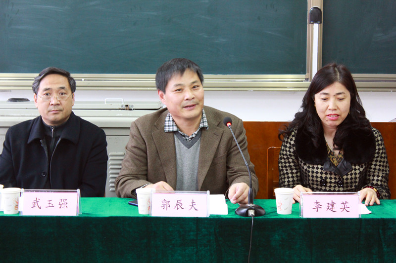 郭辰夫致辞,他指出华越奖学金的设立极大地激励了我校学子的学习热情,并代表学校对华越彩印集团表示感谢。郭辰夫还对我校学生提出三点希望,一是希望同学们以此为契机,坚定信念,做有理想、有抱负的时代青年;二是勤奋学习,做有知识、有才干的时代青年;三是修身明德,做有品德、懂得感恩的时代青年。