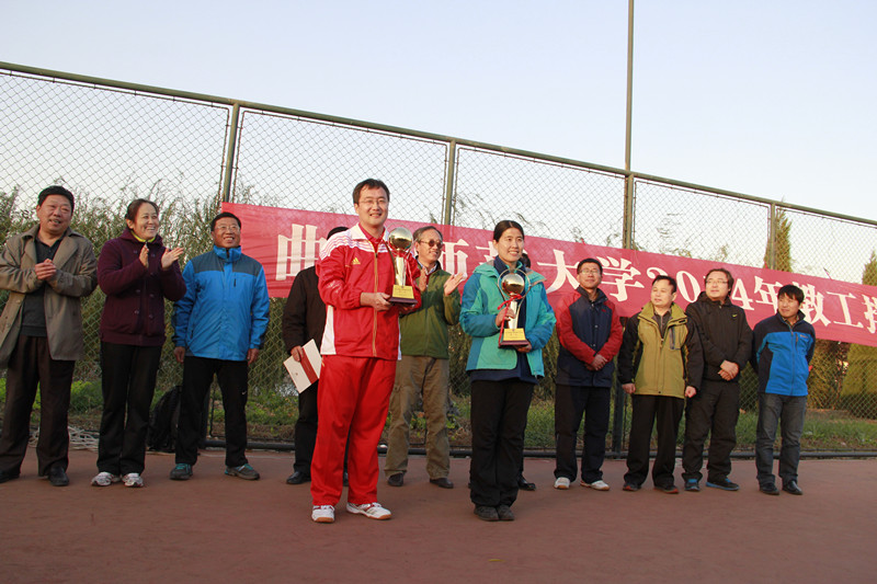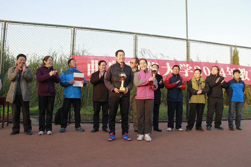 11月12日,我校2014年教职工排球比赛圆满落下帷幕。副校长、校区管委会副主任杨冰,各职能部门、各学院负责人以及大赛组委会成员、各单位领队、全体运动员、裁判员出席闭幕式。经过15天56场的激烈角逐,信息科学与工程学院男子代表队、政治与公共管理学院女子代表队摘得本次比赛男、女队的桂冠,法学院男子代表队、机关女子代表队获得本次比赛男、女队亚军,机关男子代表队和和图书馆女子代表队分别获得男、女队季军。