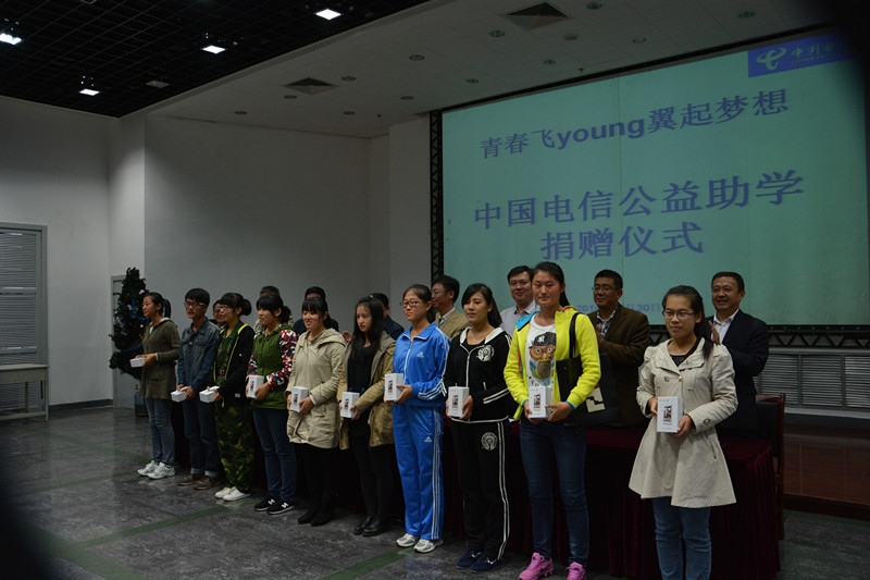 10月30日,2014年“青春飞young 翼起梦想”中国电信公益助学捐赠仪式在我校举行。学校党委副书记孙文亮、中国电信济宁分公司副总经理王健,学生工作处、校团委、宣传部、中国电信济宁分公司负责人出席仪式,各学院党总支副书记、学生代表和130名受助学生参加了仪式。