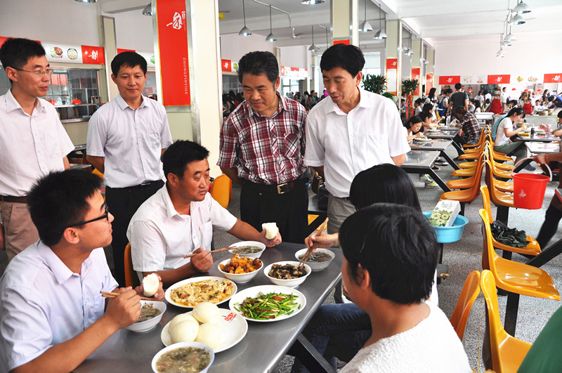 校领导还深入到学校食堂,查看食堂饭菜质量,检查食堂卫生情况,校领导叮嘱食堂负责人一定要注意食品安全,提高食堂饭菜质量,让全体新生及新生家长吃得可口、吃得放心。