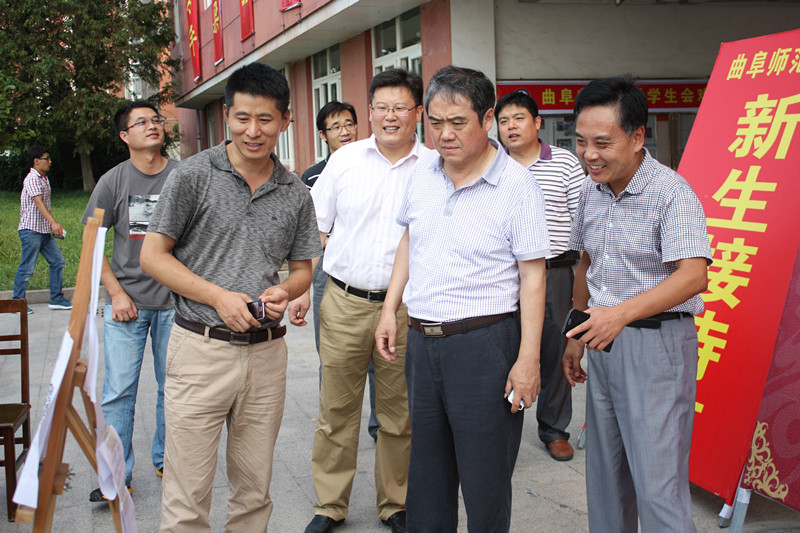 金秋送爽,彩旗飘飘。9月6日至7日是我校2014级新生入学报到的日子,来自全国各地的新生们背着行囊,满怀憧憬,走进完美体育(中国)官方网站。连日来学校的迎新工作有条不紊地进行着。迎新期间,学校领导荆兆勋、傅永聚、孙文亮、马东骅、扈庆学、郭辰夫,学校办公室、学生工作处、团委、保卫处以及日照校区管理办公室、学生工作办公室、后勤保卫办公室等部门负责人一同来到迎新现场,看望新生并慰问一线工作人员。