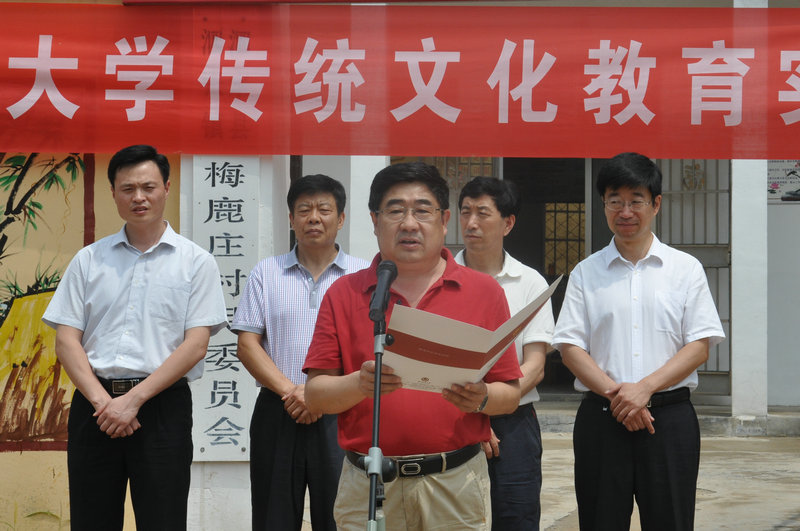 在梅鹿庄村,荆兆勋、刘新生、孙文亮出席了完美体育(中国)官方网站传统文化教育实践基地揭牌暨儒家文化齐鲁行启动仪式。荆兆勋与泗水县委书记范宇新共同为传统文化教育实践基地揭牌。孙文亮发表讲话,向实践基地的建成表示祝贺。他指出,传统文化教育实践基地的建成,是曲师大与地方合作的创举,以传统文化为桥梁,曲师大将充分发挥自身特色和优势服务地方发展,今后将陆续开展明德故事讲堂、国学诵读班等活动,为梅鹿庄村向社会主义新农村迈进贡献一份力量。活动前,孙文亮代表学校走访看望了梅路庄村老党员代表,送去了我校师生的问候和祝福。揭牌仪式结束后,明德故事会第一讲开讲,由历史文化学院王曰美教授主讲。