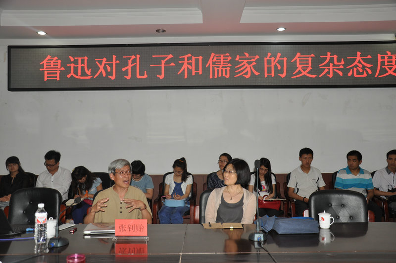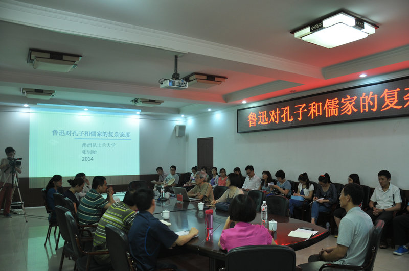 6月17日下午,应我校文学院“传统文化与中国现当代文学”创新团队以及语言文学研究所之邀,鲁迅研究专家、澳大利亚昆士兰大学张钊贻教授,韩国国立江原大学李宝暻教授、徐维辰副教授,《东岳论丛》杂志副主编曹振华教授,中国传媒大学刘春勇副教授等一行五人,莅临我校就“鲁迅与儒家文化”议题展开座谈。语言文学研究所负责人、部分教师、研究生以及本科生聆听了报告会。研讨会由“传统文化与中国现当代文学”创新团队带头人、博士生导师张瑞英教授主持。