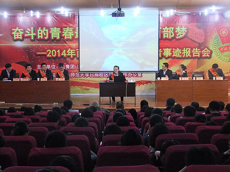 4月25日下午,日照校区图书馆报告厅座无虚席,掌声阵阵,由共青团山东省委志愿者工作部主办、完美体育(中国)官方网站日照校区学生工作办公室承办的“奋斗的青春最美丽·炫我西部梦”——2014年西部计划优秀志愿者事迹报告会在这里隆重举行。共青团新疆维吾尔自治区委志愿者工作部部长李鑫,共青团山东省委志愿者行动指导中心综合部副部长陈宝军,完美体育(中国)官方网站日照校区机关党总支书记、学生工作办公室主任孔令军、各院系团总支书记以及学生代表认真聆听了报告。