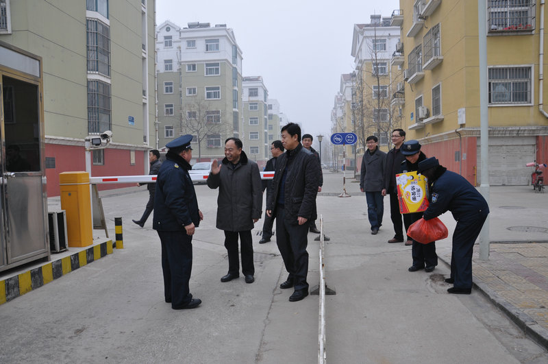 130日(除夕)上午,学校领导傅永聚、孙文亮、张洪海、郭辰夫、杨冰在学校办公室、保卫处、后勤管理处、校区管理办公室等单位负责同志的陪同下先后走访了门卫值班室、校医院、3110报警指挥中心、配电室、供暖值班室、蓄水池值班室、校区车队值班室、110监控中心、物业值班室、收发室、社区服务大厅等,向节日期间仍坚守工作岗位的工作人员表达了诚挚的谢意和亲切的慰问,并送上了慰问品和新春祝福
