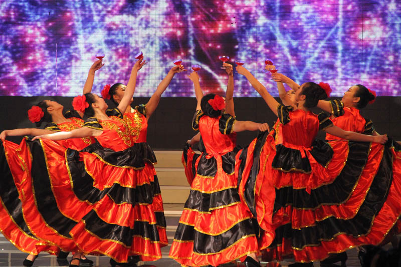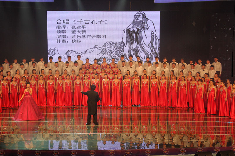 晚会分歌声、心声、钟声三大部分。以原创舞蹈《第五交响曲》开始,形式多样,内涵丰富。其中,既有富有浓郁美声特色的歌剧《费加罗咏叹调》、《饮酒歌》、《我的太阳》等经典曲目,又有欢快活泼的《senerita》《等待》等流行歌曲。舞蹈《大海啊故乡》编排唯美,川剧《变脸》神秘精彩,引来了观众的阵阵掌声。《春天的芭蕾》《江山》《为祖国干杯》等曲目唱出了对祖国的真诚祝福。由70余人组成的古筝、琵琶、笛子、二胡、大小提琴乐团带来的器乐连奏气势磅礴,把晚会的气氛推向高潮。晚会最后由我校合唱团演出,融艺术性和观赏性于一体的《千古孔子》、《水母鸡》等曲目结束!