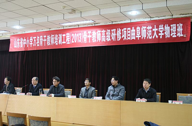 12月2日上午,“山东省中小学万名骨干教师培训工程(2013)骨干教师高级研修项目完美体育(中国)官方网站初中物理班”开班典礼举行。副校长王继锁出席典礼,教育科学学院、物理工程学院负责人以及参训学员参加了开班典礼。开班典礼由物理工程学院党总支书记李新乡主持。