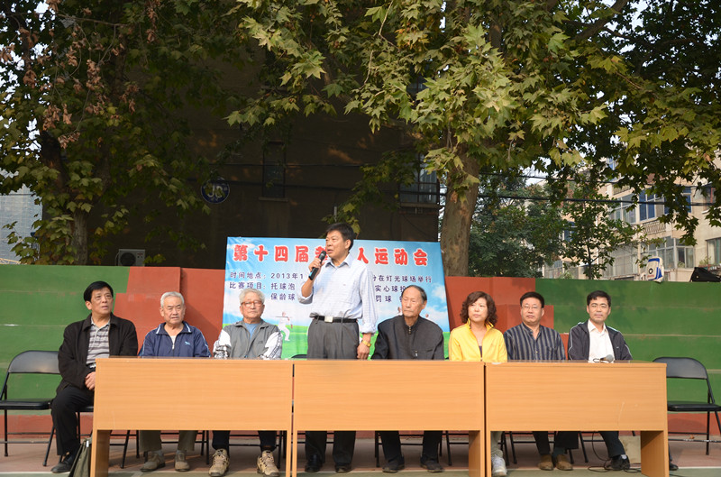 刘新生代表学校首先向老同志们致以节日的祝贺和亲切的问候。他在讲话中指出,健康的身体是大家快乐生活的基础,而适宜的体育运动和休闲活动,更是老同志愉悦身心、延年益寿的一项法宝。希望通过运动会,加强和支持老年体育事业在我校营造关心老年人身心健康、重视老年人体育健身工作的浓厚氛围,不断提高我校老年人整体健康水平。