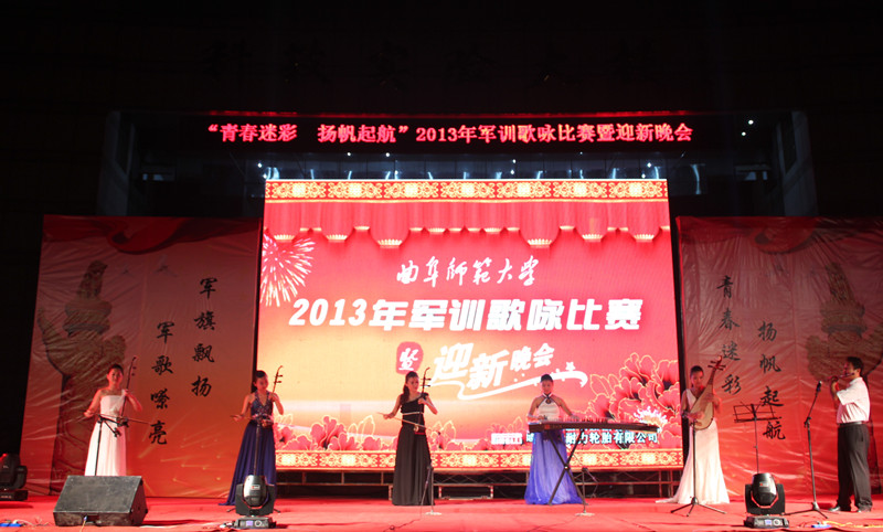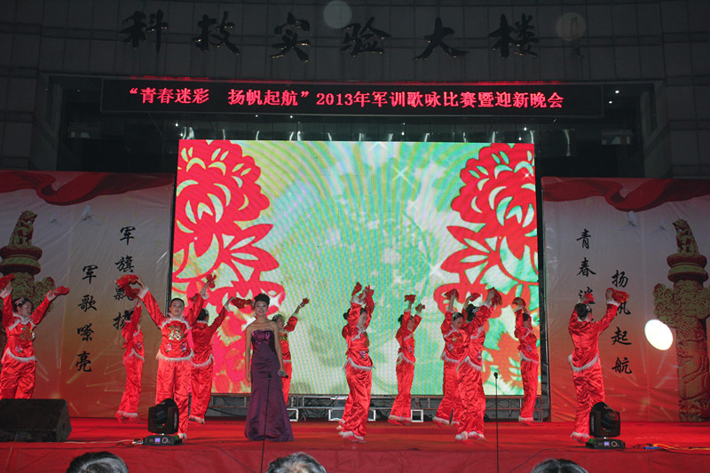 9月21日晚,以“青春迷彩,扬帆起航”为主题的2013年军训歌咏比赛暨迎新晚会在孔子文化广场成功举办,来自十个学院的10支代表队参加了此次歌咏比赛。副校长马东骅、康淑敏,学生工作处团委等相关单位负责人以及各学院新生导员、教官等出席并观看了演出。