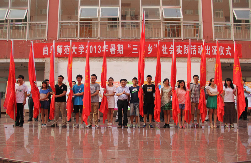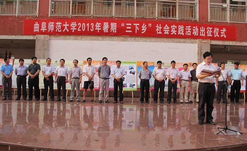 7月10日、11日,2013年大学生暑期“三下乡”社会实践活动暨西部计划志愿者出征仪式分别在两校区举行。党委副书记孙文亮、副校长康淑敏出席仪式,宣传部、团委、学工部、教务处、日照校区管理办公室、学生工作办公室等相关部门负责人、各学院学生工作负责人、各社会实践活动志愿者、西部计划志愿者参加仪式。