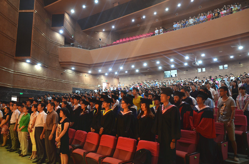 毕业典礼在庄严的国歌声中拉开帷幕。我校领导荆兆勋、傅永聚、孙文亮、康淑敏、扈庆学、郭辰夫、杨冰出席典礼,学校相关职能部门、各学院负责人以及全体毕业生参加了毕业典礼。学校办公室主任夏云杰、日照校区管理办公室主任池福安分别主持大会。