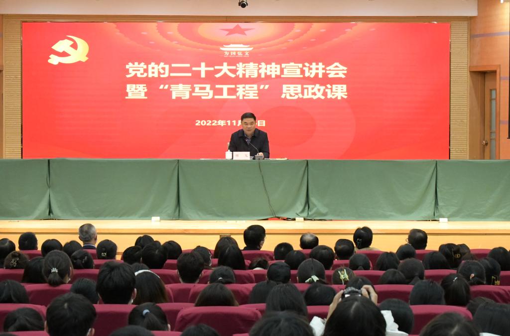 曲阜师大新闻中心讯(通讯员:李玲 摄影:刘萌 李文振) 11月16日下午, 学校党委书记邢光在孔子会堂宣讲党的二十大精神,为“青年马克思主义者培养工程”学员讲授思政课。