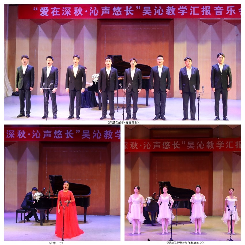 音乐会以一首欢快活泼的《库斯克邮车+青春舞曲》拉开序幕,独唱《在水一方》《祖国,慈祥的母亲》《松花江上》《月光近 月亮远》《大江东去》《再唱沂蒙山》《蝶恋花》诠释了多种风格的精彩音乐作品,学生们充分展示了专业素养和精神风采;重唱《梨花又开放+含苞欲放的花》《往日时光》《洪湖岸边是我家》引人入胜,为舞台增添了更多的创造性色彩;最后,一曲令人动容、情真意切的大合唱《感恩》,共同感悟曲园成长,汲取奋进力量,看到了学生感恩奋进新时代的精神风貌和对师长、同学的感恩之情。