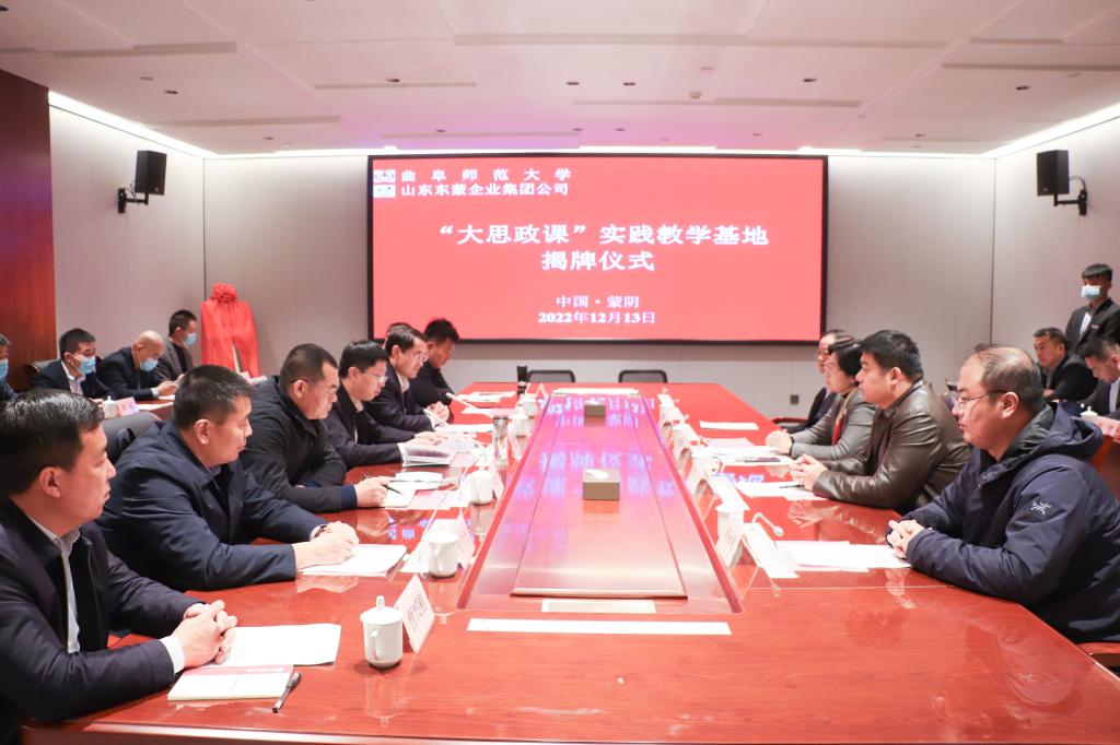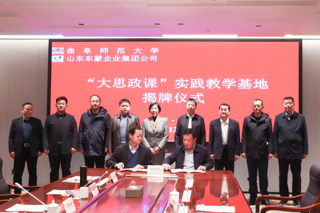 曲阜师大马克思主义学院讯(记者:刘永礼 审校:陈庆国 编辑:李文振 责编:李文振) 12月13日,完美体育(中国)官方网站马克思主义学院与山东东蒙企业集团签署共建协议,揭牌成立曲阜师大首个“大思政课”实践教学基地。曲阜师大党委副书记李志红,山东省人大常委会预算工作委员会办公室主任、一级调研员、省“四进”工作队蒙阴县支队队长王如奎,蒙阴县委副书记、县长苗运全,出席仪式。