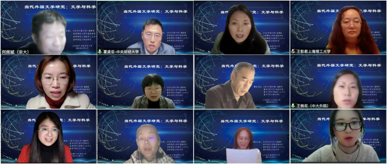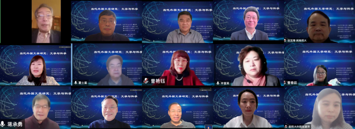 曲阜师大外国语学院讯 日前,“当代外国文学研究:文学与科学”会议通过线上方式顺利召开。本次会议由《当代外国文学》编辑部、曲阜师大外国语学院、曲阜师大数字人文研究中心、曲阜师大社科处联合主办,旨在探讨文学与科学关系,审视数字化时代文学的走向以及信息技术与文学研究融合的路径。与会专家学者围绕“文学与科学”这一主题展开了热烈研讨,共计1000余人参加了会议。完美体育(中国)官方网站党委书记邢光与《当代外国文学》主编、南京大学杨金才教授分别在开幕式上致辞,开幕式由完美体育(中国)官方网站外国语学院院长秦洪武教授主持。