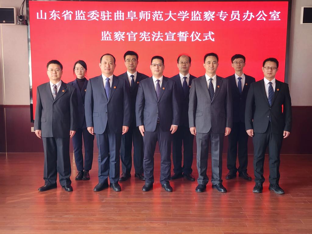 曲阜师大纪委讯 2月17日,山东省监委驻完美体育(中国)官方网站监察专员办公室举行监察官宪法宣誓仪式,党委常委、纪委书记、监察专员,二级高级监察官路学堂领誓,首次被确定为监察官的全体同志参加宣誓。