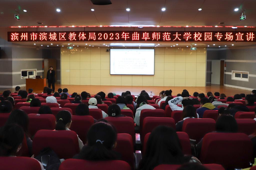 会后,滨城区人社局、教体局工作人员为曲阜师大两校区的2023届毕业生作了专题招聘宣讲,700余名毕业生参加了宣讲会。宣讲中,四位通过校园招聘从曲园学子成为滨城教师的2022届毕业生,现场与学弟学妹分享了求职就业相关经验。