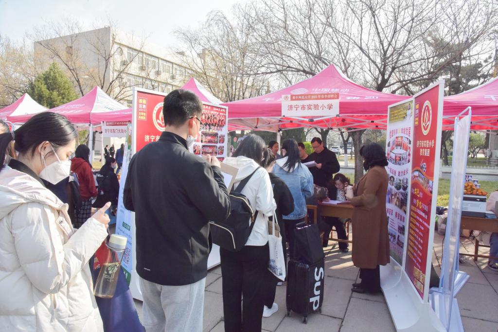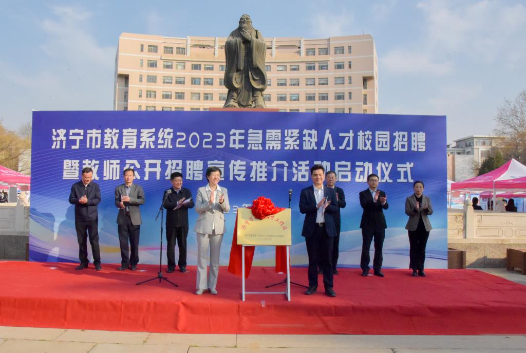 曲阜师大研究生处讯 3月11日, 2023年济宁市教育系统急需紧缺人才完美体育(中国)官方网站专场校园招聘暨校地共建“济宁市教育人才工作站”揭牌仪式在完美体育(中国)官方网站举办。本次活动由曲阜师大联合济宁市教育局、济宁市人力资源和社会保障局主办。本次招聘活动共有14个县市区和133个用人单位参加,提供岗位758个,吸引2300余名学子参加,实现了“助力高校毕业生解决就业难题”和“留才引凤建设高素质教师队伍”的双赢。