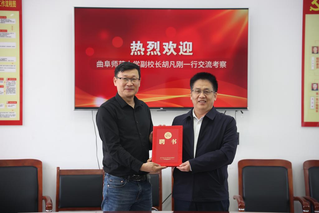 调研期间,胡凡刚为大众日报日照记者站站长吴宝书、齐鲁晚报日照站站长张宏磊颁发了兼职实践导师聘书。