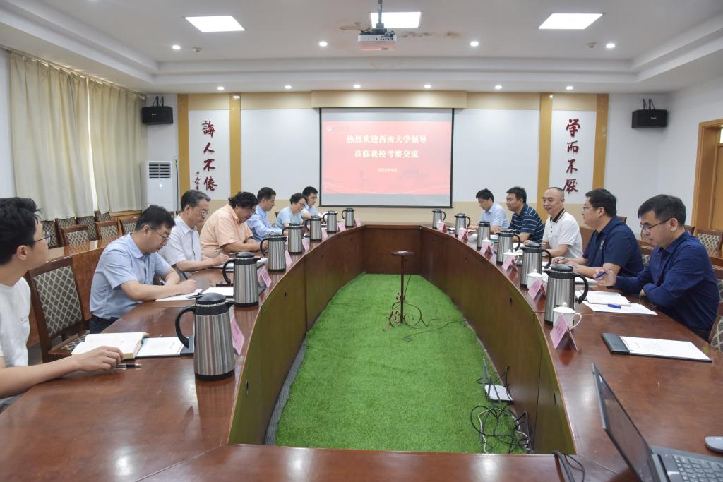 曲阜师大完美体育(中国)官方网站讯   6月8日上午,西南大学党委常委、副校长崔延强一行到曲阜师大考察交流,曲阜师大党委副书记、校长张洪海,党委常委、副校长李兆祥会见来宾并举行座谈。