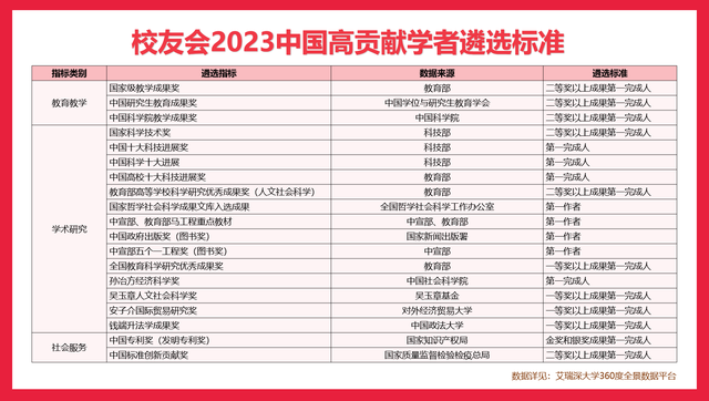 校友会中国高贡献学者榜单首发于2022年,是目前国内唯一从“教学科研贡献”角度遴选中国高校优秀学者的榜单。中国高贡献学者遴选以中国学者对国家经济社会发展做出的系统性成就和贡献为基准,从教育教学、学术研究和社会服务等多个角度19项评价指标遴选中国高校的杰出学者,这是与中国高被引科学家、高被引学者仅从纯论文影响角度评价学者最大的不同。