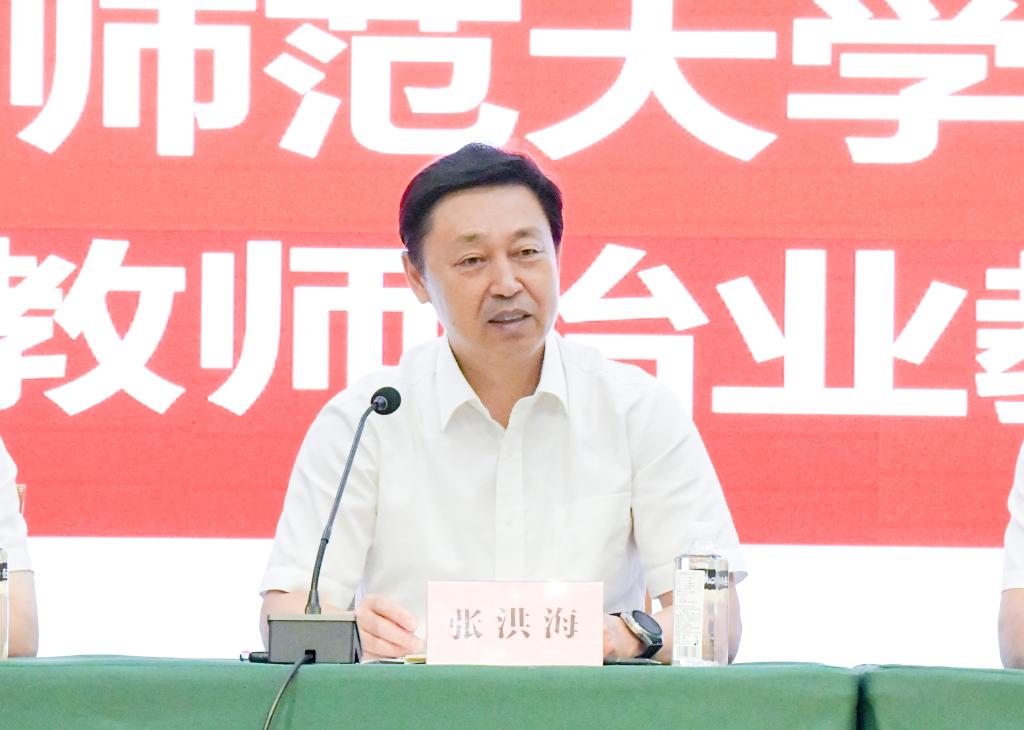 张洪海对新进教师提出四点期望: 一要提高政治站位,坚定落实立德树人根本任务。要把为党育人、为国育才的使命内化于心、外化于行,结合各自的工作职能,贯彻好“以学生为中心”的理念,谱写好教书育人、科研育人、管理育人、服务育人的“大合唱”,共同引领学生立大志、明大德、成大才、担大任。二要聚焦学校蓝图,服务学校高质量发展大局。要心怀“国之大者”,自觉在大局下思考、在大局下行动;同时要心怀“校之重者”,树立共同体意识和主人翁精神,做到上下一条心、全校一盘棋,在守土负责、守土尽责中服务大局、彰显担当,齐心协力把学校的发展愿景化为美好实景。三要校准个人目标,凝聚干事创业合力。要明确目标,培养拔尖创新人才、建设一流学科、产出标志性成果、完善内部治理等,在各方面追求卓越、笃行不怠;要清晰路径,在不同的岗位上,尽快适应岗位、投身岗位、做出业绩。四要洁身自好,坚守践行师德师风第一标准。要不断提升教师职业道德素养,汲取榜样力量,做到见贤思齐,树牢红线意识,时刻自省自警,努力成为“经师”和“人师”的统一者,成为学生为学、为事、为人的大先生。