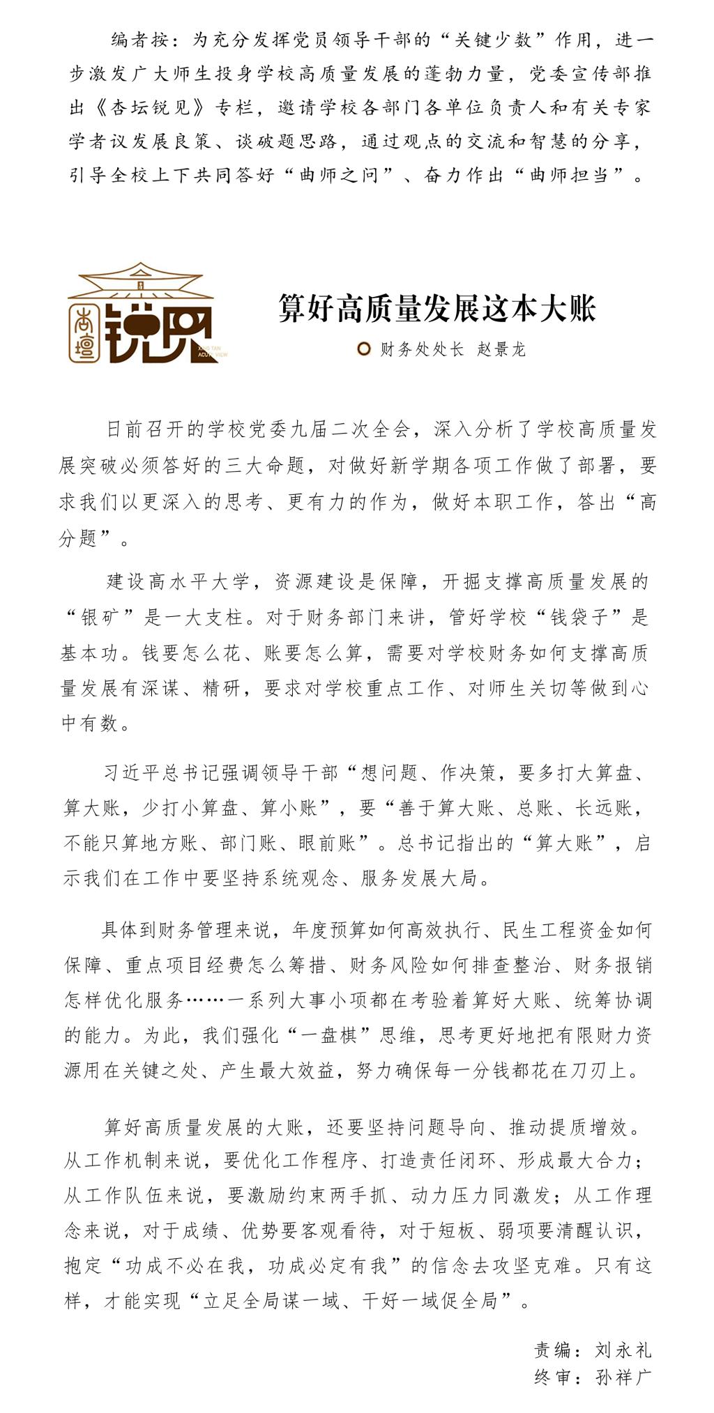 【杏坛锐见】算好高质量发展这本大账