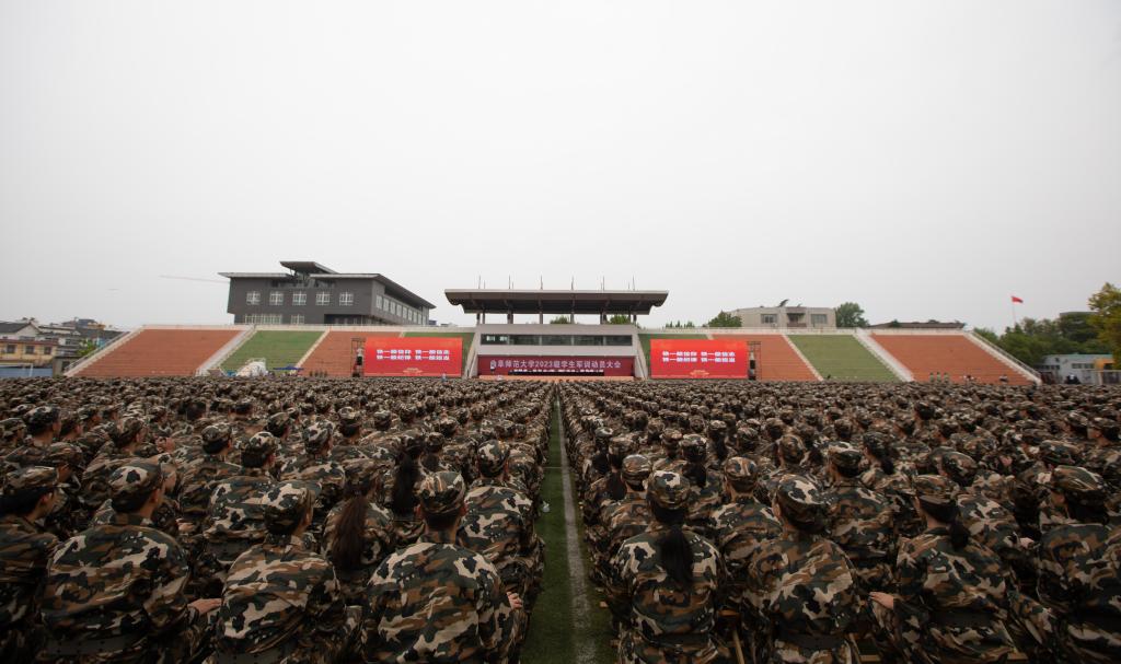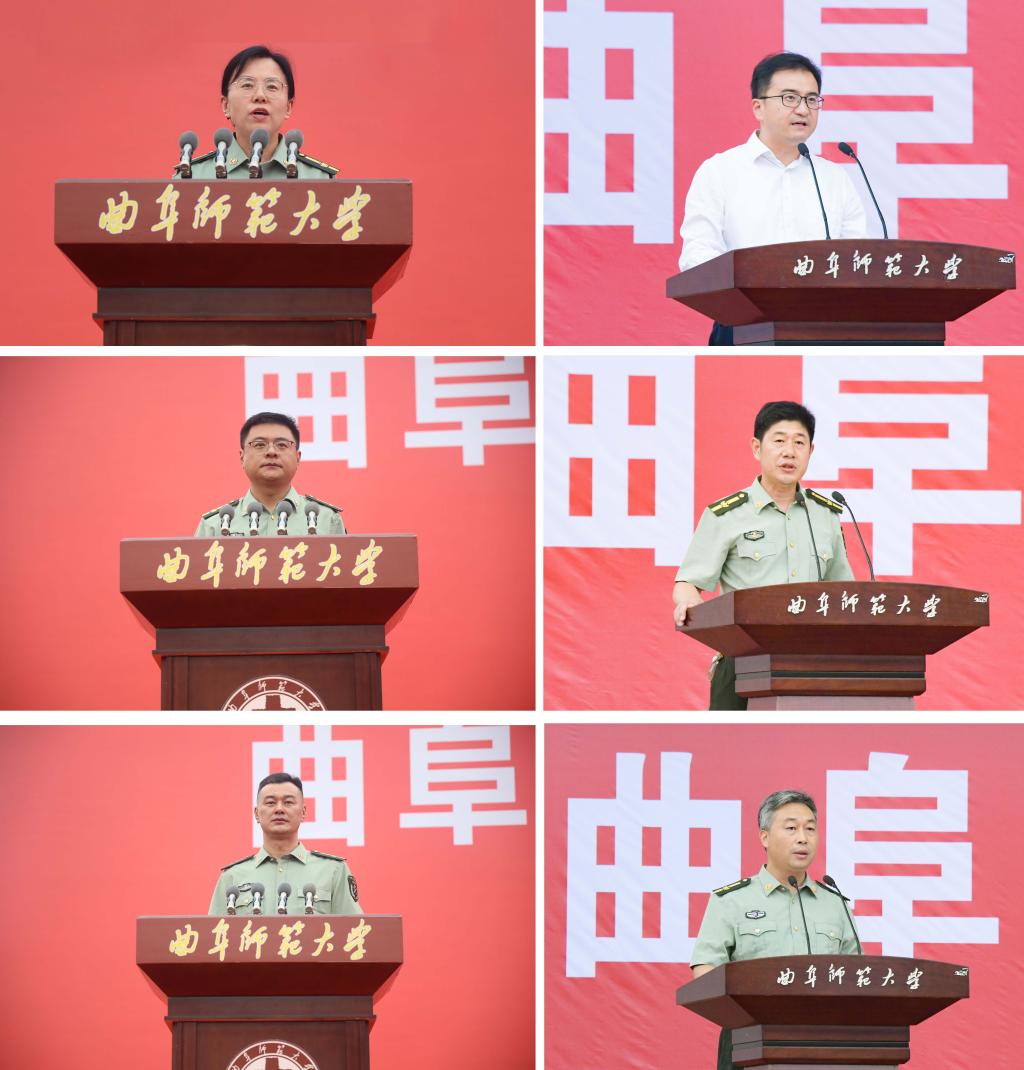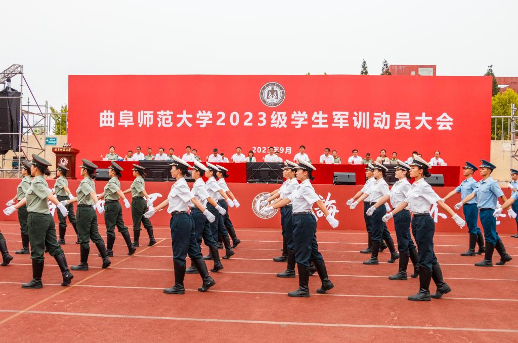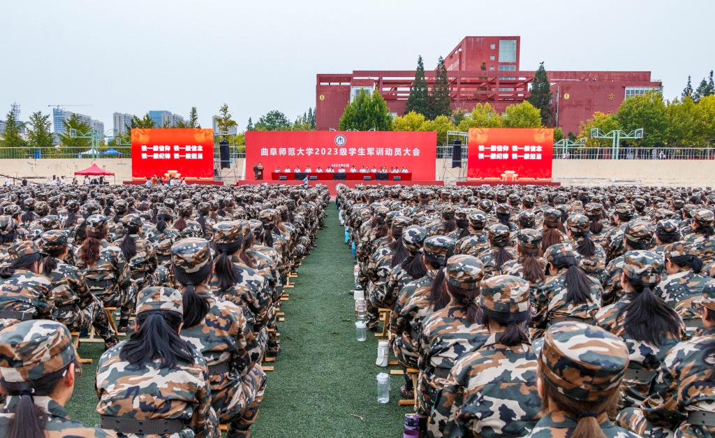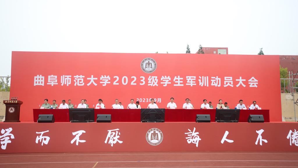 曲阜师大学生工作处讯 9月11日,完美体育(中国)官方网站2023级学生军训动员大会分别在曲阜、日照两校区举行。学校党委副书记卢国强,党委常委、副校长胡凡刚,党委常委、副校长刘刚、党委常委、副校长纪洪涛出席大会。学校相关党政部门负责人、各学院负责领导、2023级辅导员、2023级全体参训同学参加大会。大会由学生工作处(武装部)处(部)长、军训旅副旅长姜美颖,团委书记、军训旅副政委孔轶众主持。