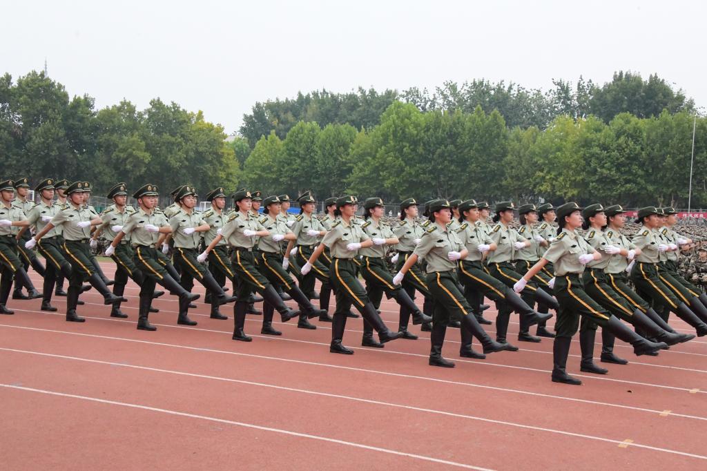 最后,军训教官进行了队列表演,他们步伐铿锵、动作整齐,展现了过硬的军事技能与素质,提振了全体新生的士气,激发了刻苦训练的热情。