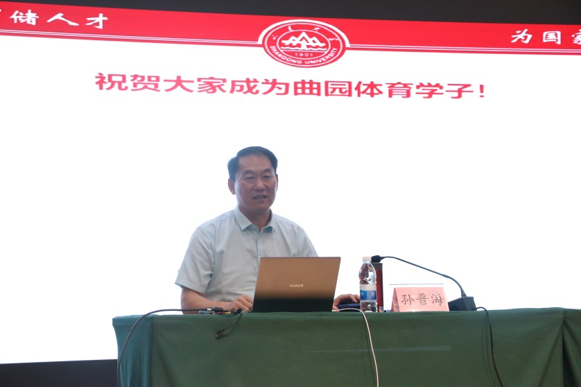 体育科学学院讯 日前,曲阜师大体育科学学院特邀“泰山学者”、山东大学体育学院院长孙晋海教授来校作专题讲座,讲座的主题为“研究生期间为人为事为学的思考及学业规划”。曲阜师大党委常委、副校长纪洪涛出席讲座。
