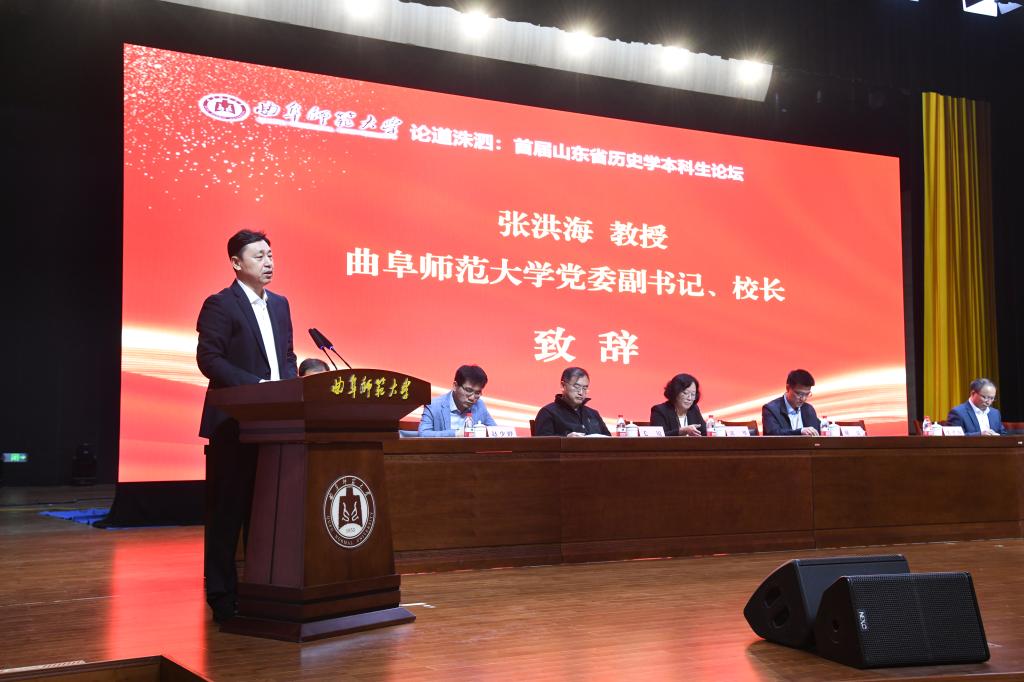 曲阜师大历史文化学院讯 10月13日至15日,“论道洙泗:首届山东省历史学本科生论坛”在曲阜师大举行。教育部高等学校历史学类专业教学指导委员会秘书长、中山大学副校长谢湜,教育部高等学校历史学类专业教学指导委员会委员郭华,山东省历史学会会长赵兴胜,完美体育(中国)官方网站校长张洪海出席论坛开幕式。
