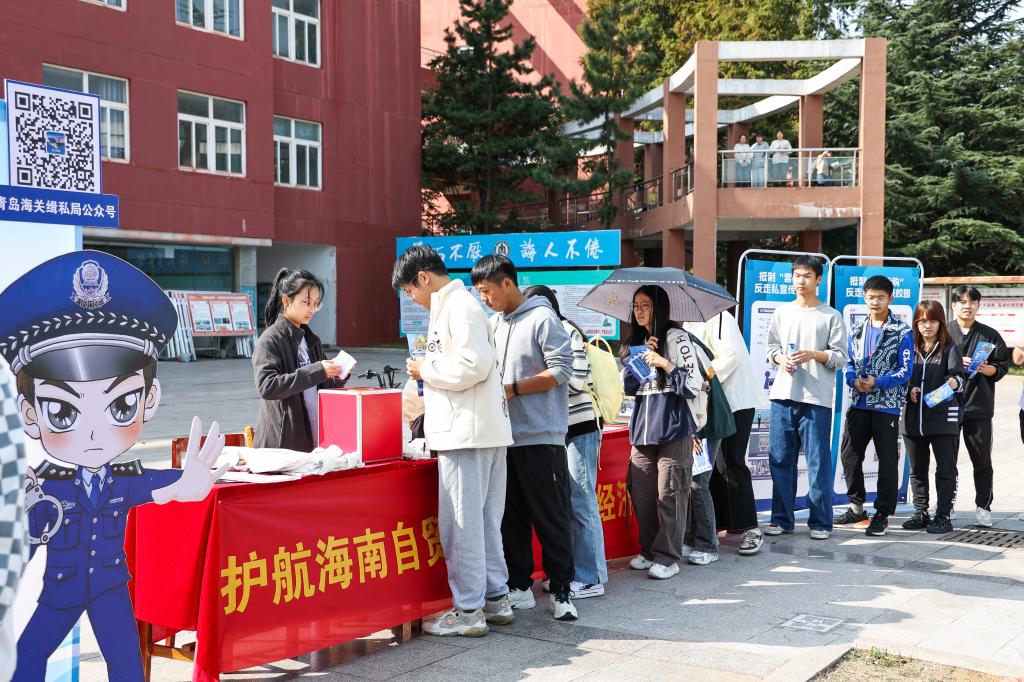 此次普法宣传通过现场视频播放、展板宣传、发放宣传册、互动答题等方式,就什么是离岛免税“套代购”行为、“套代购”走私行为后果以及如何抵制“套代购”进行宣讲,进一步加强大学生抵制走私的意识与能力,教育学生“心有法度、行有尺度”,为创造文明、平安、和谐的校园环境提供保障。