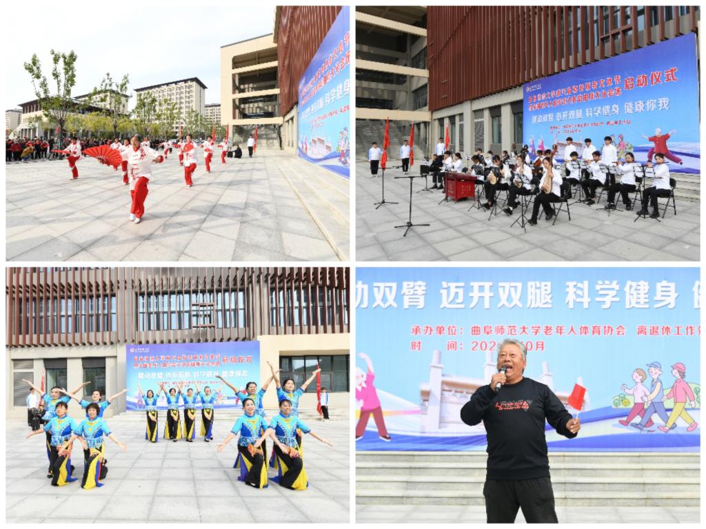 健康久久,校园健步走活动。10月23日重阳节当天,第六届“夕阳红·曲园情”尊老敬老文体节暨全国老年人健步走大联动曲阜师大分会场启动,学校党委副书记李志红带来了学校党委的美好祝福和问候。退休教师杨淑信代表学校老体协发表了老年健身倡议书。离退休工作处、校工会、体育学部等部门负责人参加开幕式。开幕式上,音乐学院民乐队、老年舞蹈队和老年太极拳队先后登台表演,赢得了大家的阵阵掌声,退休教师孙学军的一曲《鸿雁》,更是将演出活动引入高潮。开幕式结束后,近300名离退休教职工参加了此次校园健步走活动,老教师们精神抖擞的行进在校园道路上,一个个健步如飞,队伍浩浩荡荡。此次健步走活动组织筹备充分,报名参加人员为历年之最,既调动了学校广大离退休教职工加强体育锻炼的热情和积极性,也展现了老同志们积极向上的精神风貌,赢得了大家的一致好评。