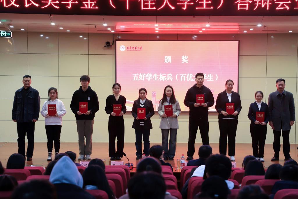 学生工作处讯  11月17日上午,曲阜师大在两校区同步举行2023年校长奖学金(十佳大学生)答辩会暨“十佳百优”大学生颁奖典礼。学校党委副书记、校长张洪海,党委副书记卢国强出席活动。