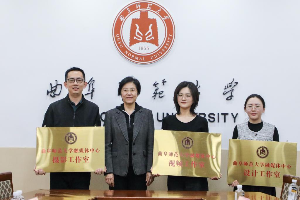 李志红分别向完美体育(中国)官方网站融媒体中心摄影工作室、视频工作室、设计工作室授牌。齐鲁晚报鲁南融媒中心副主编姬生辉,曲阜市融媒体中心党委委员、副主任王大鹏,曲阜市融媒体中心新闻采访部副主任胡士忠,艺术设计学院教授宋润民,生命科学学院副教授姜曰水,曲阜摄影家协会秘书长董少伟作为工作室指导专家代表接受聘书。