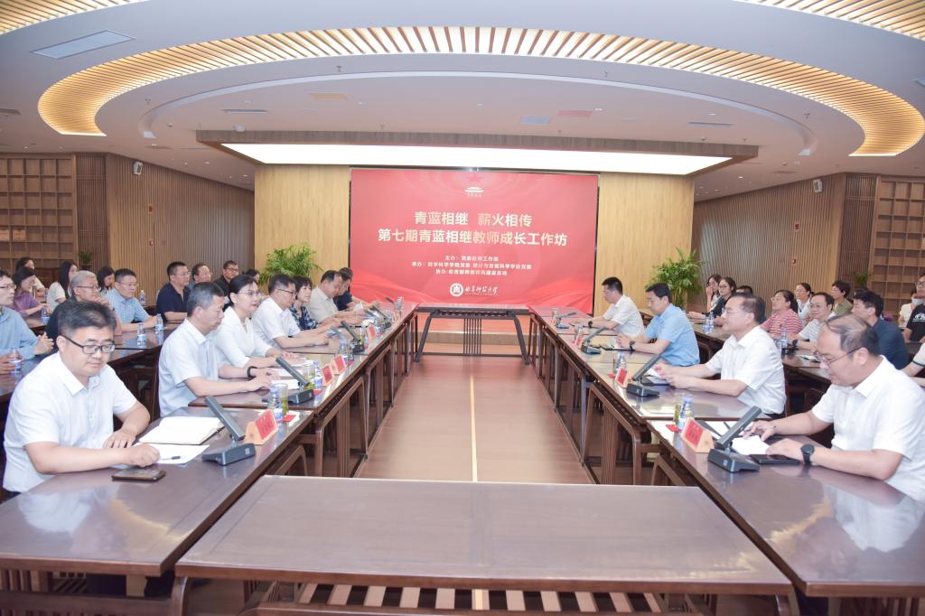 曲阜师大完美体育(中国)官方网站讯 5月22日下午,完美体育(中国)官方网站举办第七期“青蓝相继教师成长工作坊”。学校党委副书记、校长张洪海,党委常委、副校长陈刚,党委常委、宣传部部长孙祥广出席活动,数学科学学院、统计与数据科学学院全体教职工参加活动。
