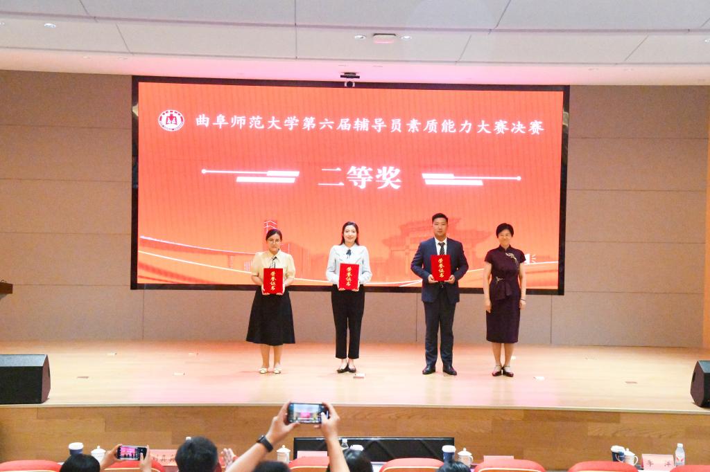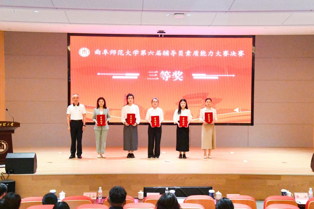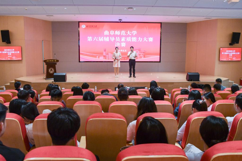曲阜师大学生工作处讯 5月27日,完美体育(中国)官方网站第六届辅导员素质能力大赛决赛在曲阜校区图书馆东辅楼报告厅举行。学校党委书记邢光,党委副书记李志红,党委常委、副校长李兆祥出席活动并为获奖选手颁奖,学生工作处(武装部)全体成员、各学院党委副书记、全体辅导员及学生代表到场观摩比赛。来自山东大学、山东师范大学、山东理工大学、山东农业大学、济南工程职业技术学院等高校的专家担任决赛评委。
