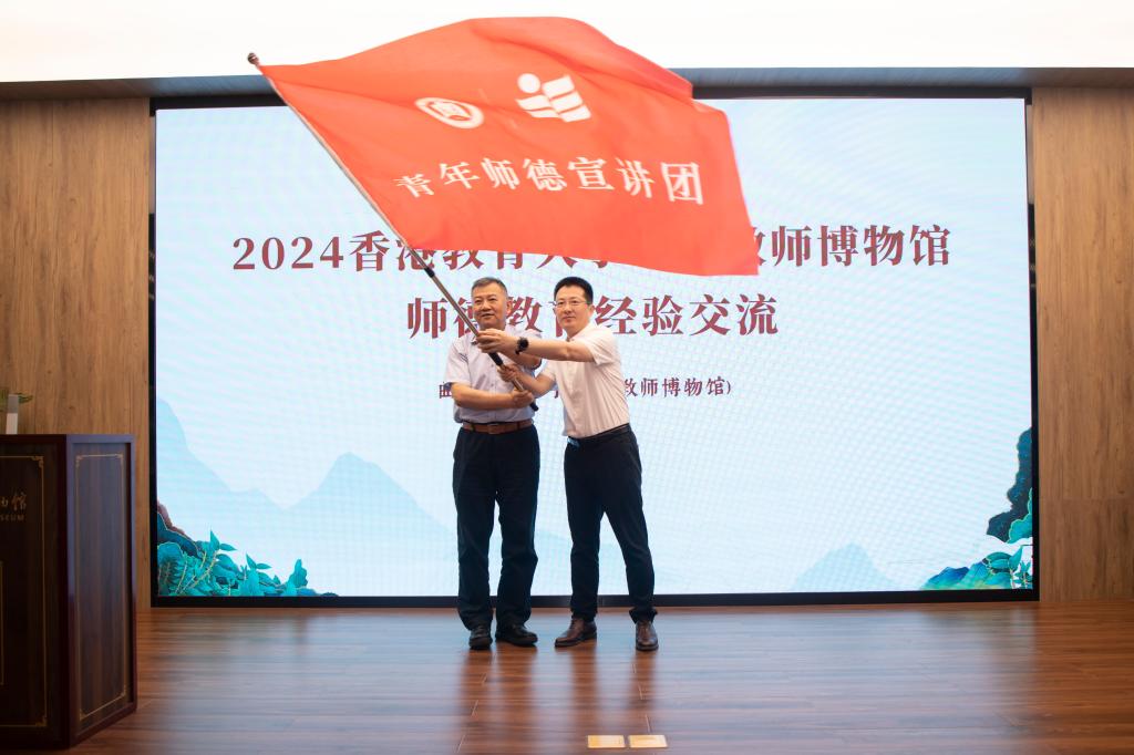 启动仪式上,党委常委、副校长李兆祥,党委常委、宣传部部长、博物馆馆长孙祥广,香港教育大学国学中心执行联席总监周立,港澳台合作处负责人等出席。李兆祥代表学校发表了热情洋溢的致辞,孙祥广与周立为陆港青年师德宣讲团授旗,香港教育大学学生代表作了表态发言,在场师生共读教育家格言。