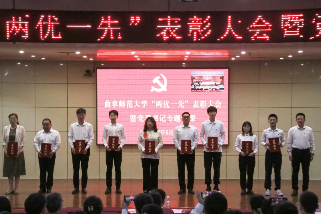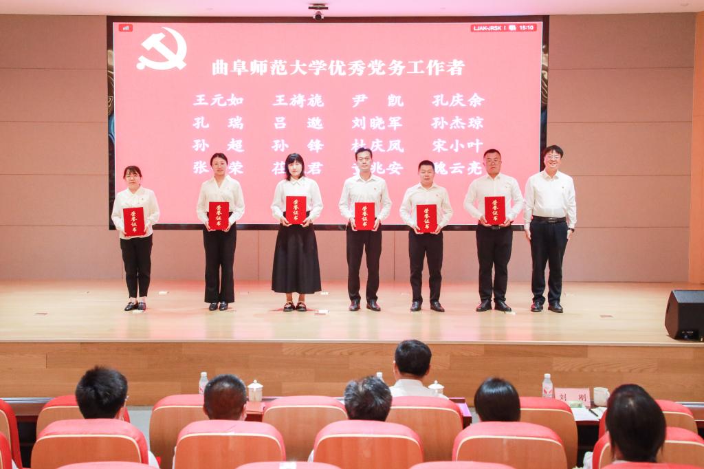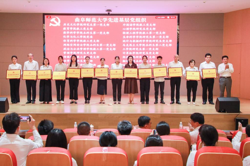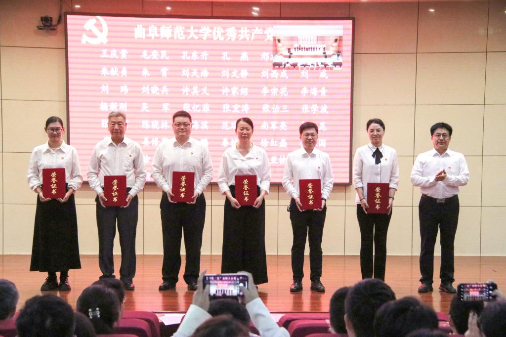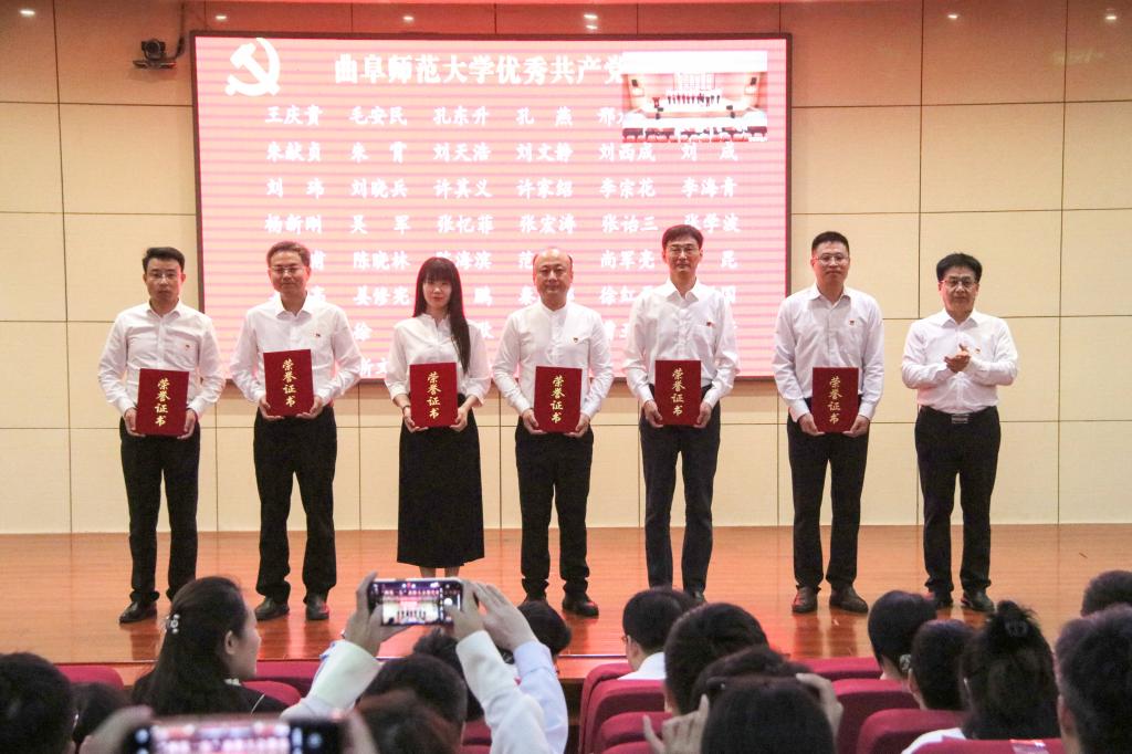邢光指出,曲阜师大建校69年来,始终与党和国家同呼吸共命运,始终与时代的脚步同频共振。一代又一代曲园人、一批又一批党员先锋,不忘初心、牢记使命、锐意进取、砥砺前行,以爱党报国精神为旗帜,秉承“学而不厌、诲人不倦”校训,积淀形成了崇真尚实、弘毅致远、立己达人的价值追求和艰苦奋斗、自强不息、敢为人先的精神特质,书写了高质量发展的辉煌篇章。全校各级党组织和广大党员是推动学校各项事业发展最重要的中坚力量,是一个用行动和成绩证明战斗堡垒和先锋榜样作用的“光荣的集体”。